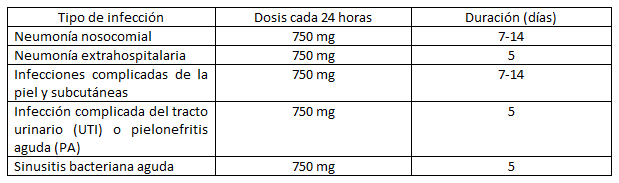 La dosis usual de las tabletas de la levofloxacina es 500 mg o 750 mg administrados oralmente cada 24 horas, que se indica para la infección y se describe a continuación. Estas recomendaciones aplican a pacientes con aclaramiento de creatinina ≥ 50 mL/min.